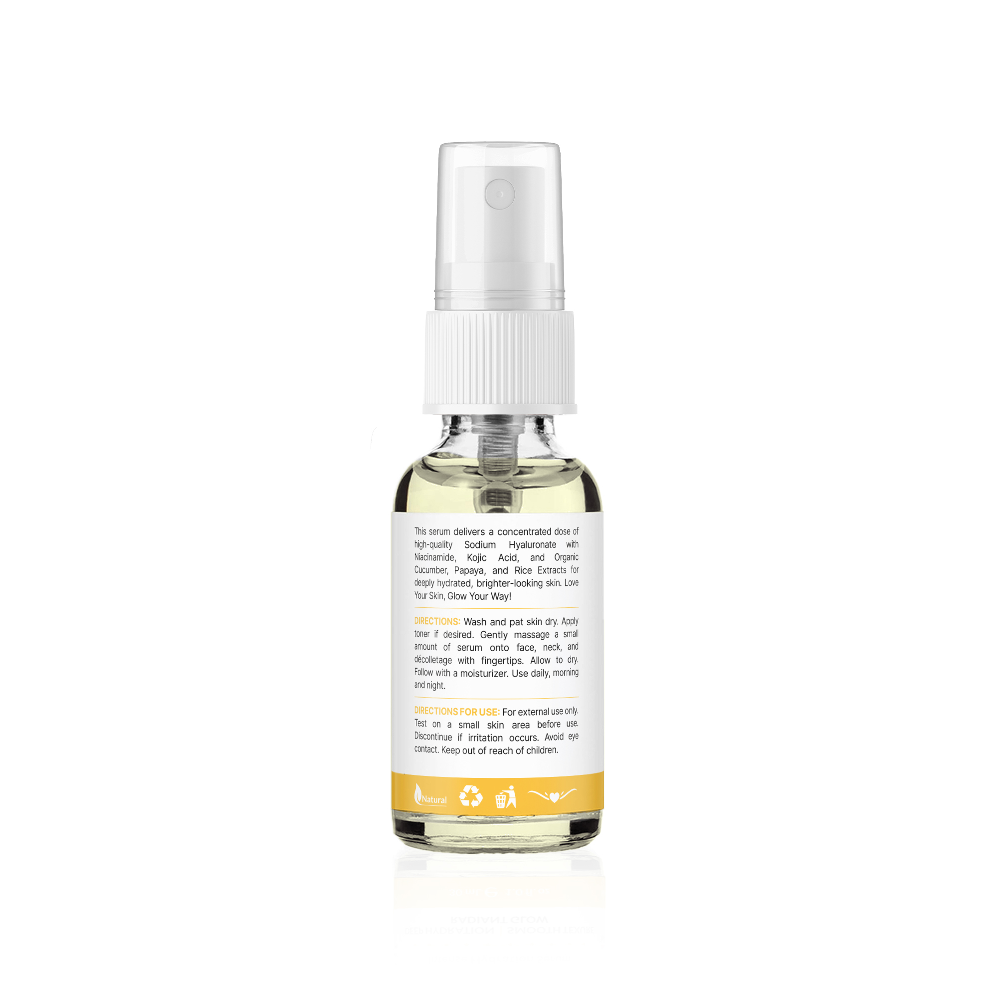 Aqua (Water), Glycerin, Sodium Hyaluronate, Niacinamide, Panthenol, Aloe Barbadensis Leaf Juice, [preservatives + pH adjusters as applicable].